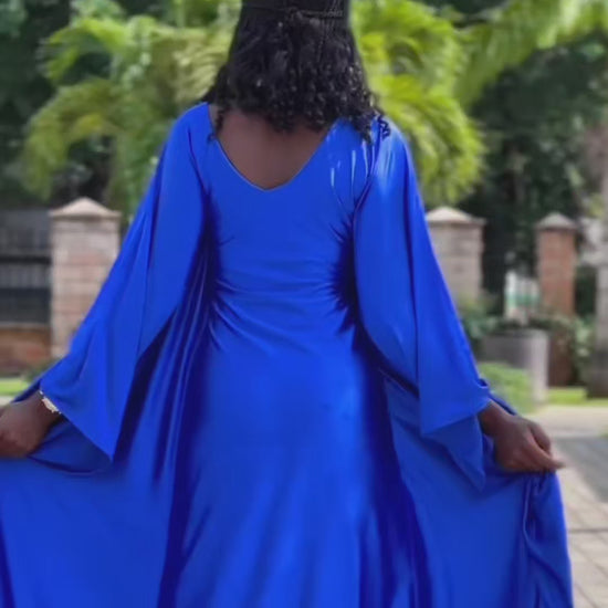 Make a bold impression in the Amara Kaftan, crafted from structured crepe with a flowing silhouette, front slit, and curve-enhancing fit that blends elegance with ease.
